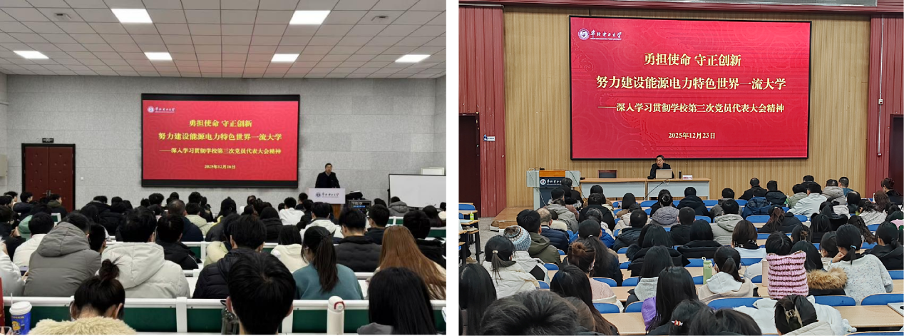 11月18日、12月2日、12月16日、12月23日,校级宣讲团成员、校党委政策研究室主任、经济与管理学院党委书记张德安以《勇担使命 守正创新 努力建设能源电力特色世界一流大学》为题,分别为经济与管理学院、经济管理系、沙河院区以及学校学生党员骨干培训班宣讲了学校第三次党代会精神。