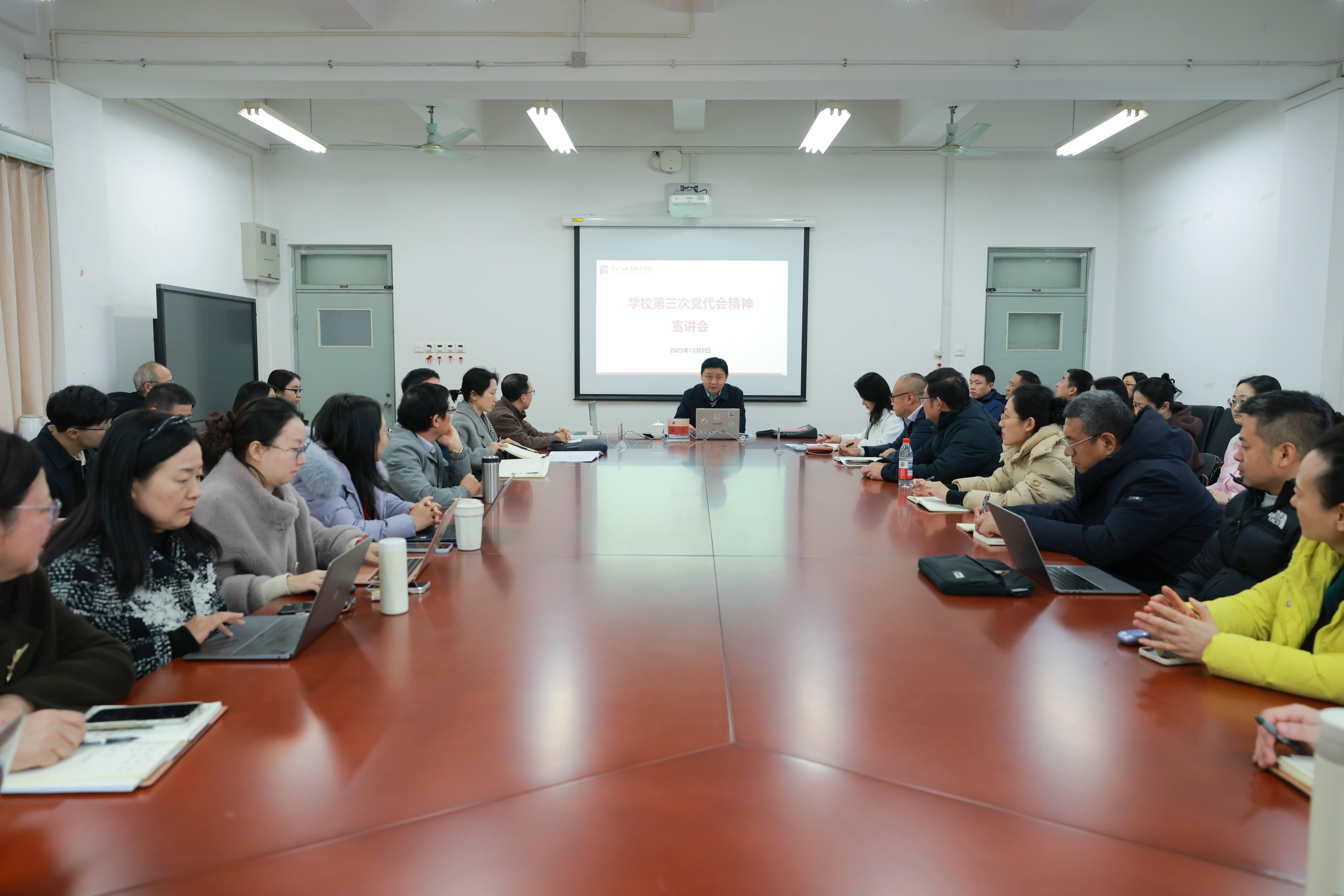 2025年12月17日至12月26日,新能源学院分宣讲团面向学院各党支部开展了学校第三次党代会精神专题宣讲,通过现场宣讲等形式累计开展宣讲活动14次。学院全体教师,部分学生参加了宣讲活动。